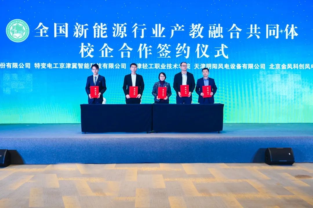 活动现场,天津轻工职业技术学院还与中电科蓝天科技股份有限公司、特变电工京津冀智能科技有限公司、北京金风科创风电设备有限公司、天津明阳风电设备有限公司签约,共建碳中和新能源开放型产教融合实践中心。